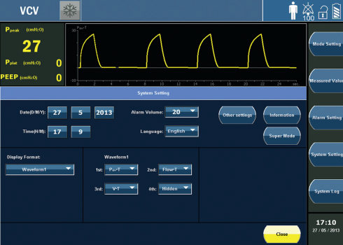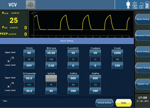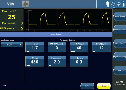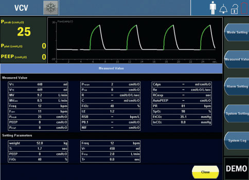El Vento 62 es un ventilador avanzado para adultos y pediátrico con varios modos de ventilación para cumplir con todos los requisitos de las unidades de cuidados intensivos del paciente. El sistema está equipado con un monitor de pantalla táctil TFT de 15 “.
